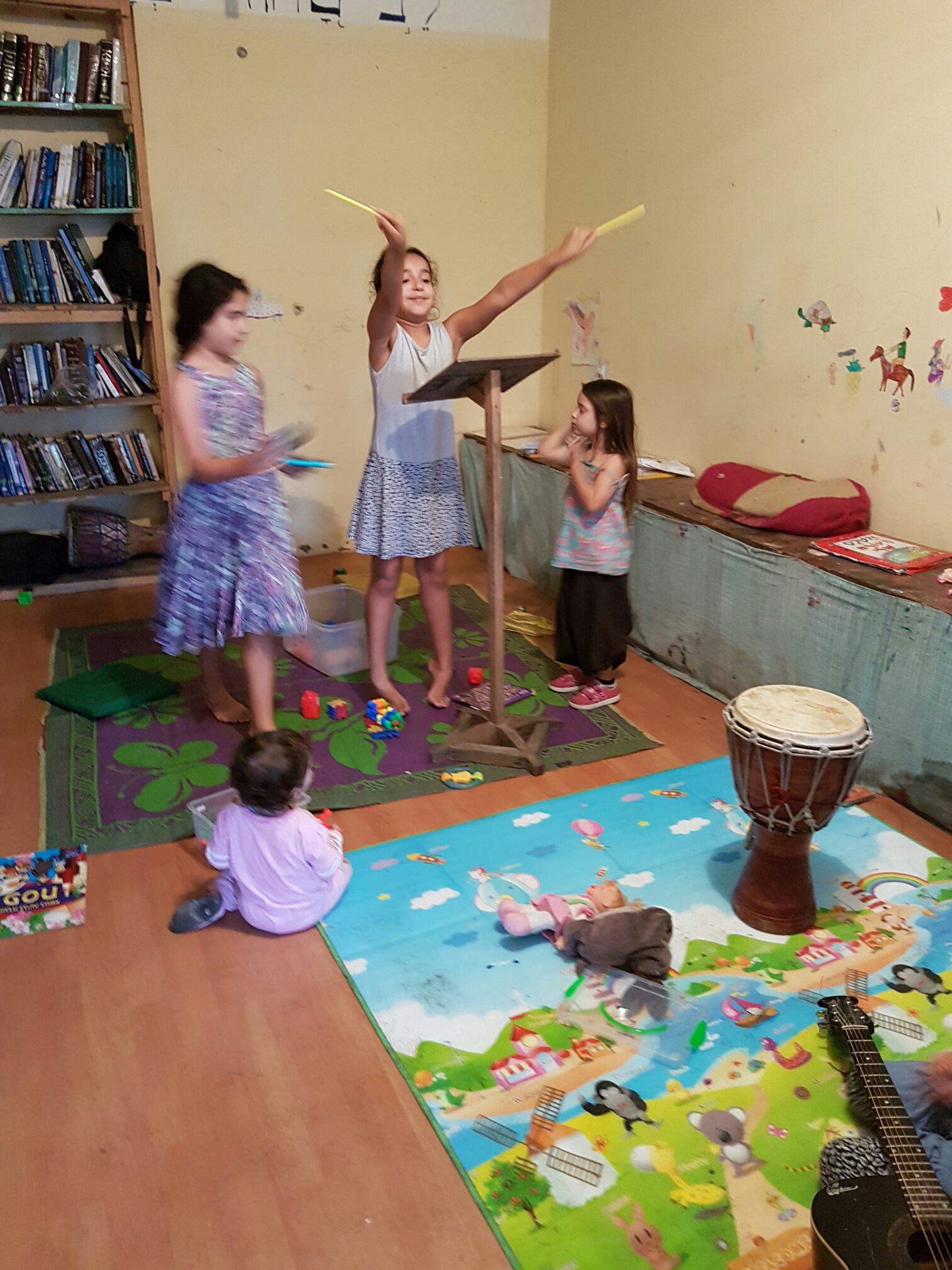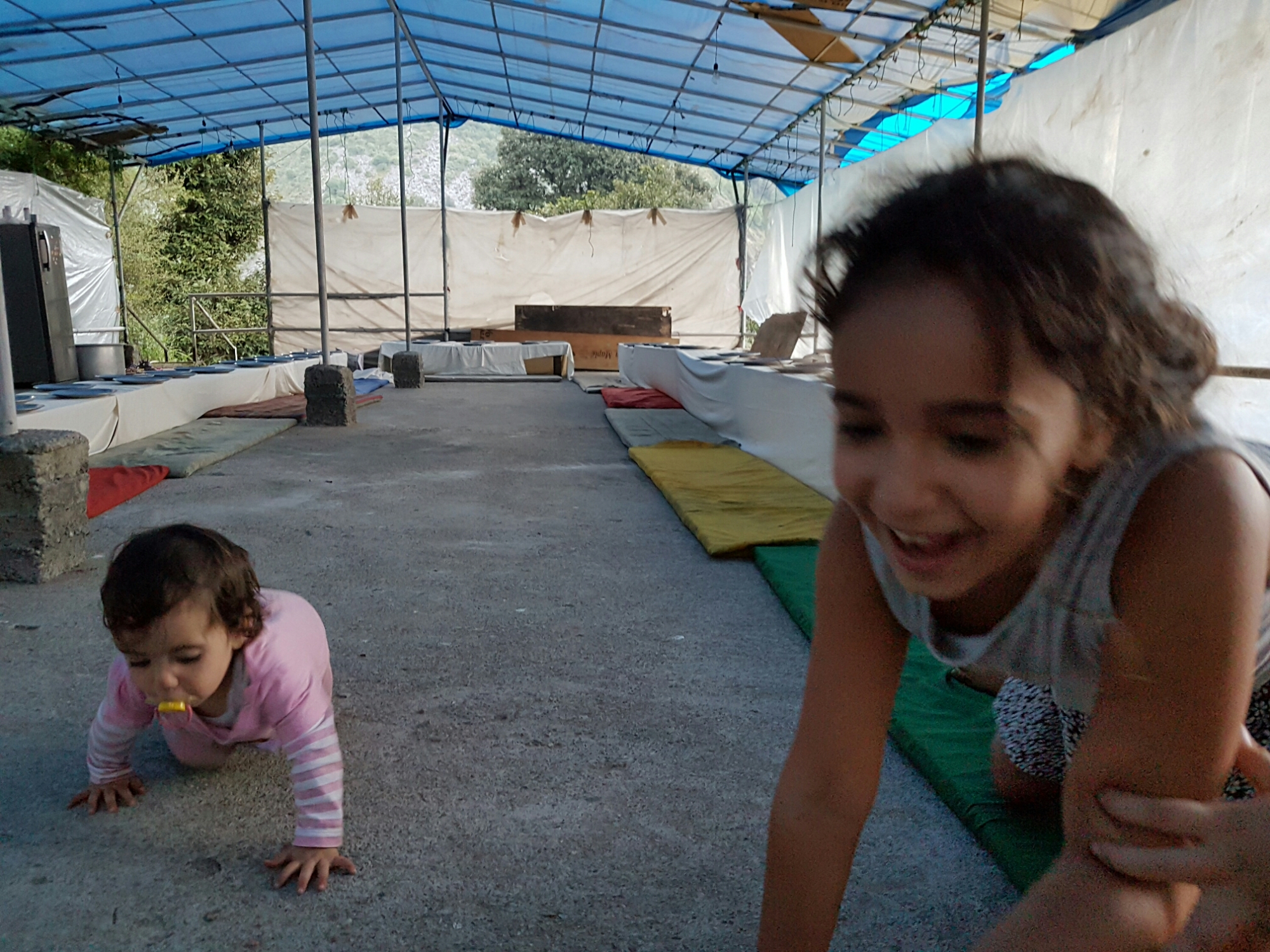 כשהבנו שאנחנו מתכוונים להשתתף בארוחת הערב, השעה היתה כבר אחרי חמש וחצי. אז החלטנו להשאר כך, כמו שאנחנו, כי ללכת ולחזור מקולחים עד שבע לארוחת ערב, זו היתה משימה בלתי אפשרית מבחינתנו, אז נשארנו כך. הילדות שיחקו בחדר המשחקים של אלומה והזמן חלף. כבר אמרתי היום, כמה מדהים איך שהילדים מתאימים את עצמם מהר כל כך למקומות ומצבים חדשים.