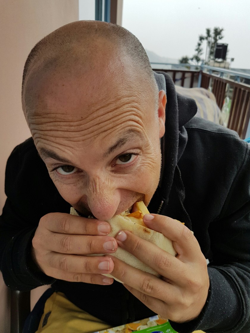 היום החלטנו שנשארים באזור ולא עושים יותר מידי, כשהשמיים שמעו את זה, מייד פתחו שעריהם והחלו גשמים. כבר סיפרתי בפוסטים קודמים שמידי פעם מטפטף כאן, אבל כזה גשם עוד לא היה לנו בשעות היום. אני מודה שמזג אויר כזה היה מטריד רבים ואף מדכא, אצלי ממש הפוך, זה גורם לליצן שבי לצאת ולהתחיל לרקוד מאושר, וזו התחושה שלי כרגע. התנדבתי ללכת להביא (לבד) ארוחת צהריים קלה, בזמן שכולם נשארו בחדר. ואני בחרתי ללכת לדוכן 'הפלאפל של דודו', טוב נו, כולם כאן אומרים שזה הפלאפל הכי טוב בהודו. המקום פיצפון וכמו בכל מקום בבאגסו הומה ישראלים חביבים שמנהלים את השיחה המוכרת גם מהארץ, איפה הפלאפל הכי טעים?