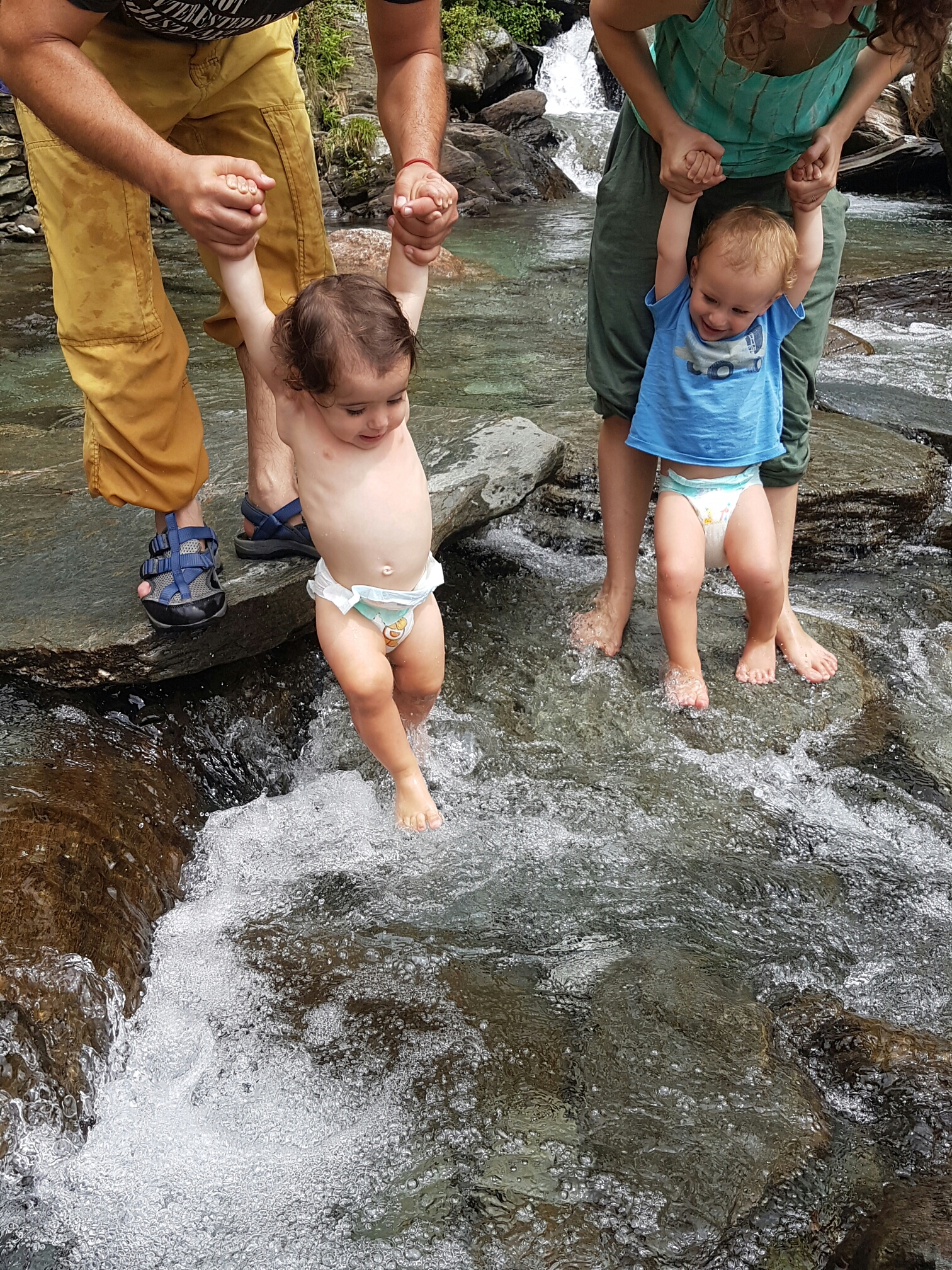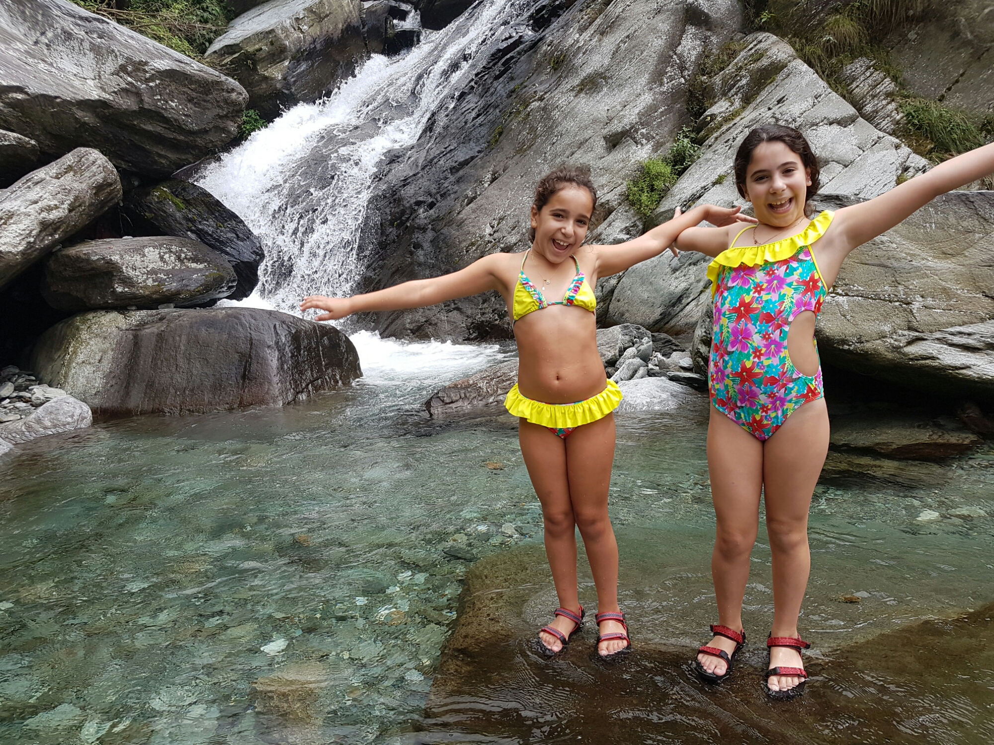 הבנות, פשטו בגדים ונשארו עם בגד ים, לאף אחת לא ממש הפריע שאלו מים קפואים, המגיעים מן ההרים המושלגים. דילגו מסלע לסלע בשמחה, אפילו גלי, שישנה מרבית הדרך, ברגע שהתעוררה, לא הסכימה לצאת מהמים.