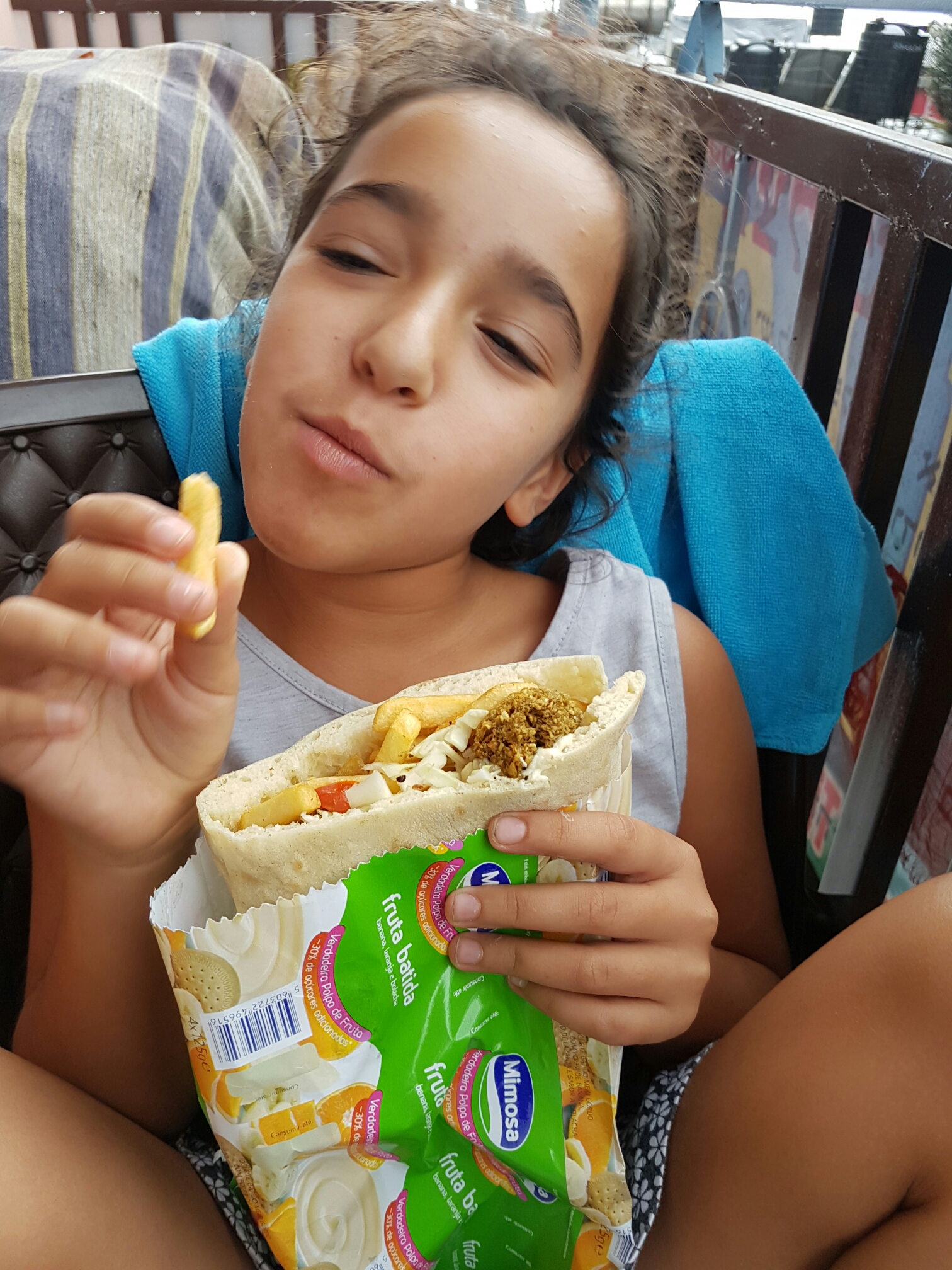 כשחזרתי עם הפלאפל, אחרי יותר מחצי שעה, (בגלל התור והקצב ההודי, מאוד מקובל כאן להמתין הרבה זמן לאוכל במסעדות או דוכן) הבנות כבר היו ממש רעבות ומיידי זללנו את הפלאפל, שהיה מאוד מוצלח, החל מהקציצה עצמה, הסלט, הפיתה, החומוס והטחינה.