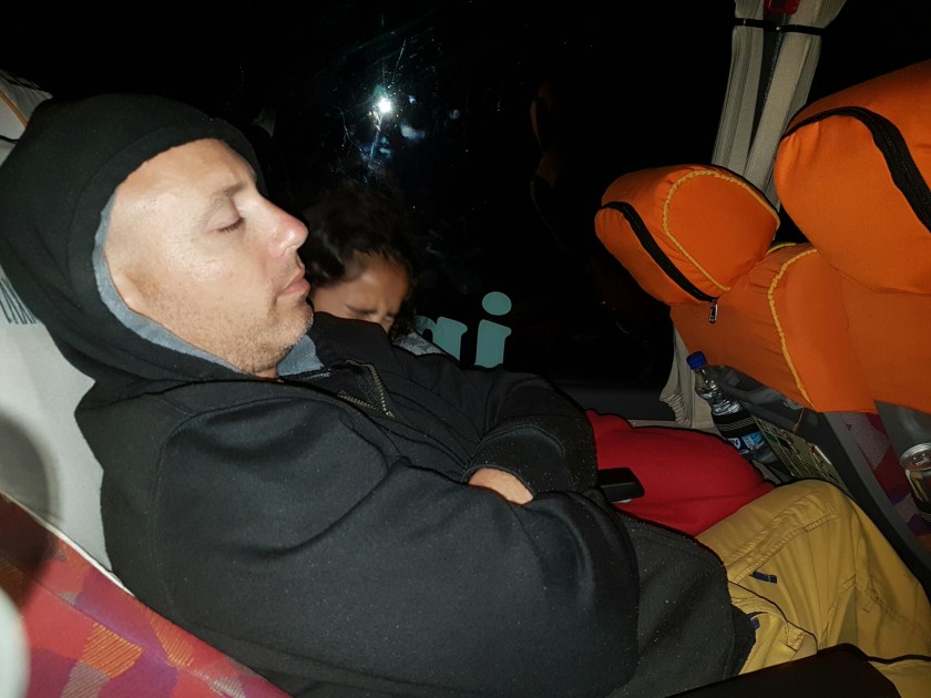 הנסיעה החלה, האוטובוס היה מלא באנשים בעיקר תיירות פנים, התיישבנו על הכיסאות שבאמת היו גדולים יותר וניתן לכוונן אותם.