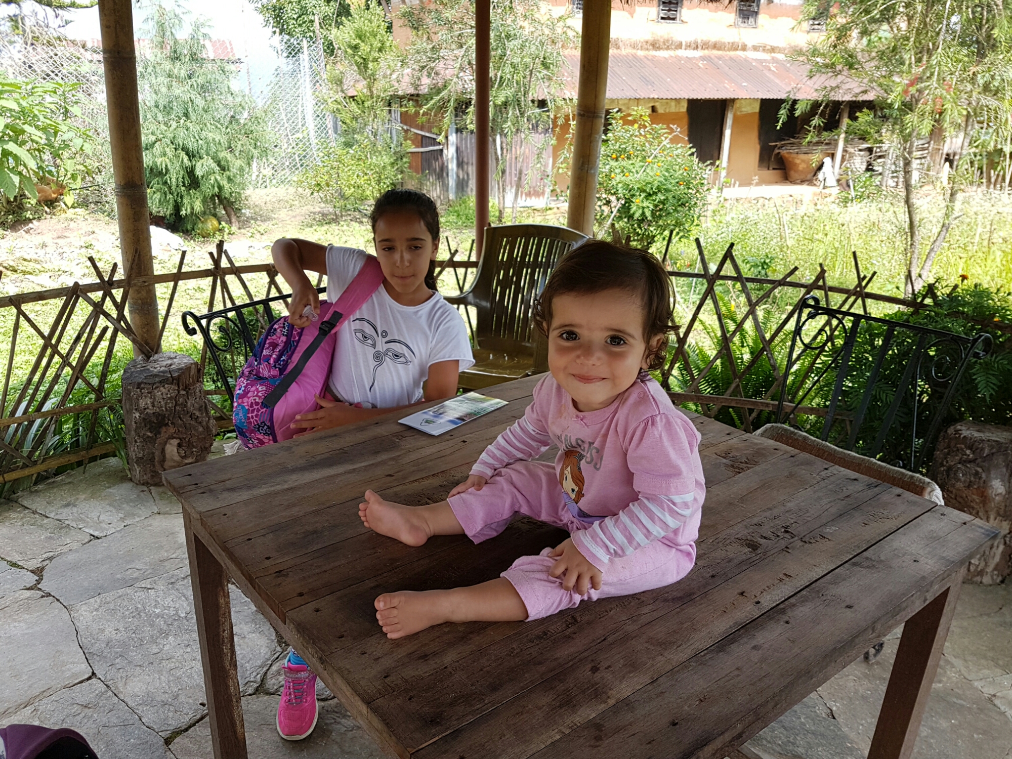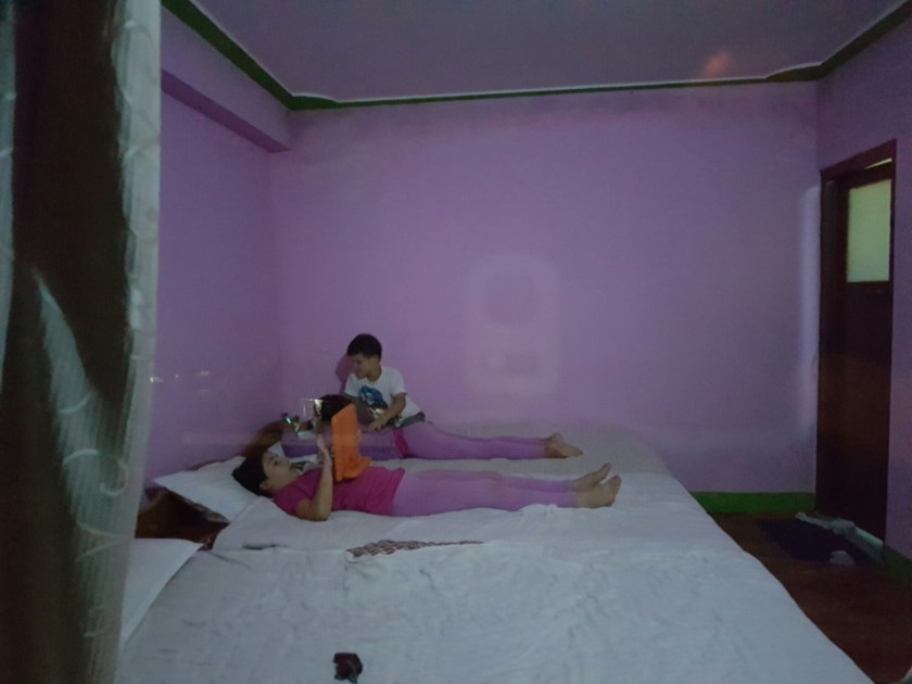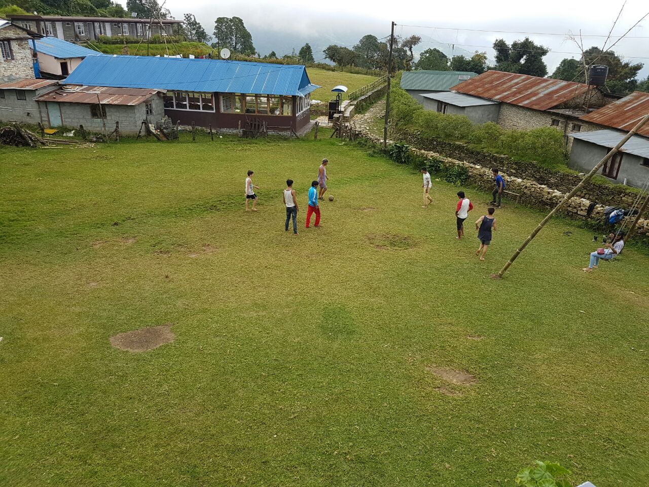 נגלה לעיננו מעין מישור מוגבה ועליו מספר גסטאהוסים, ולכל אחד מהם חצר מטופחת בדשא ובפרחים. לכל אחד היתה גם נדנדה כמו זו שראינו בדרך. הילדים התלהבו, אופיר והבנות הלכו להתנדנד והבנים/גברים הלכו לשחק כדורגל עם הנפאלים ואל תשאלו אותי מאיפה היה להם כח… אבל אמרתי לכם שלא היה יום קשה במיוחד.