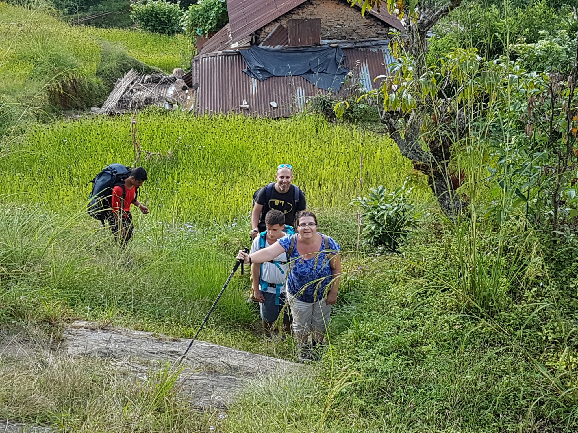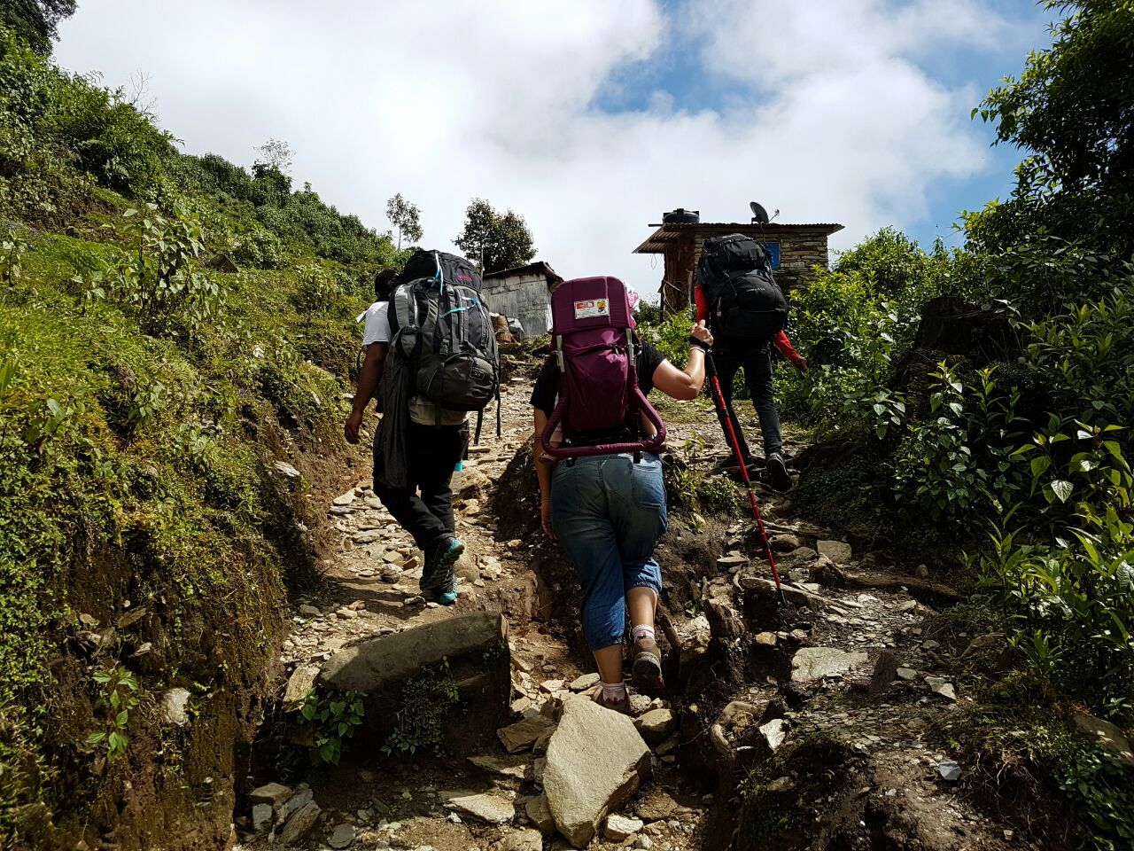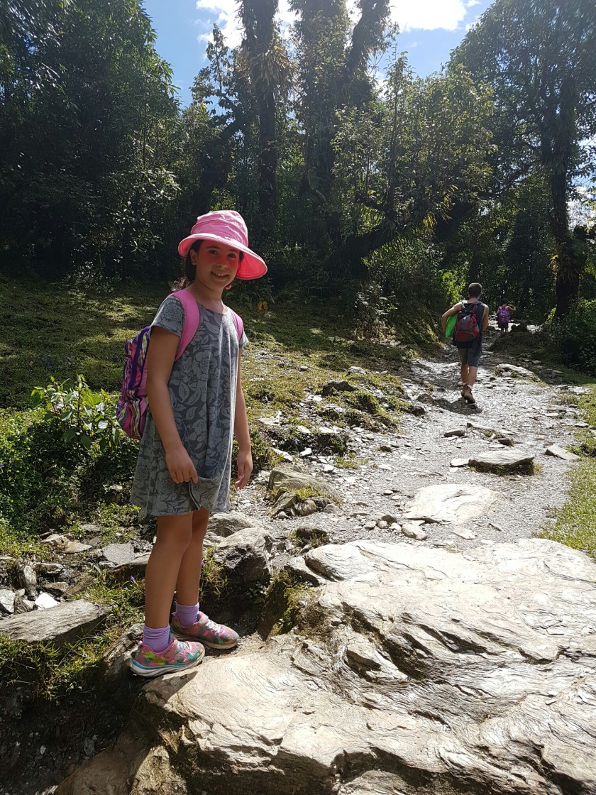 היום הראשון בטרק, הוא היום הכי קשה מבחינת העלייה של שעתיים זמן נפאלי, מה שיכל להיות בקלות 5 שעות. ואנחנו התכוננו לגרוע מכל. הכנו את הבנות שהולך להיות נורא קשה, כמו העליה למקדש השלום. עודדנו אותן שזה רק שעתיים וזהו אין יותר ימים כאלו.