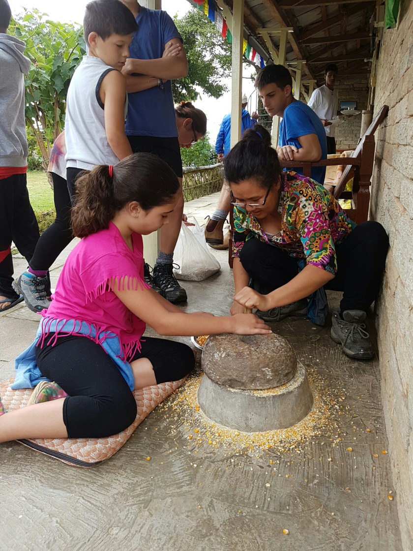 המקום הוא כפר אקולוגי והם מגדלים את מרבית הירקות, מלפפונים, עגבניות, קישואים, דלעות, תותים, צ'ילי כמובן, תירס ובטח עוד המון שפיספסתי. יש להם תרנגולות לביצים וכן פרות ועזים מהן הם חולבים חלב פעמיים ביום ומכינים, יוגורט (קארד) המסורתי, חמאה וכמובן משתמשים גם בחלב עצמו. המדריכה המקומית לימדה את הילדים לטחון את גרגרי התירס בטחינה גסה למען הכנתם למאכל התרנגולות. הטחינה נעשתה באמצעות אבני ריחיים, וההתלהבות היתה גדולה, כמובן שגם אנחנו המבוגרים לקחנו חלק בעשייה.