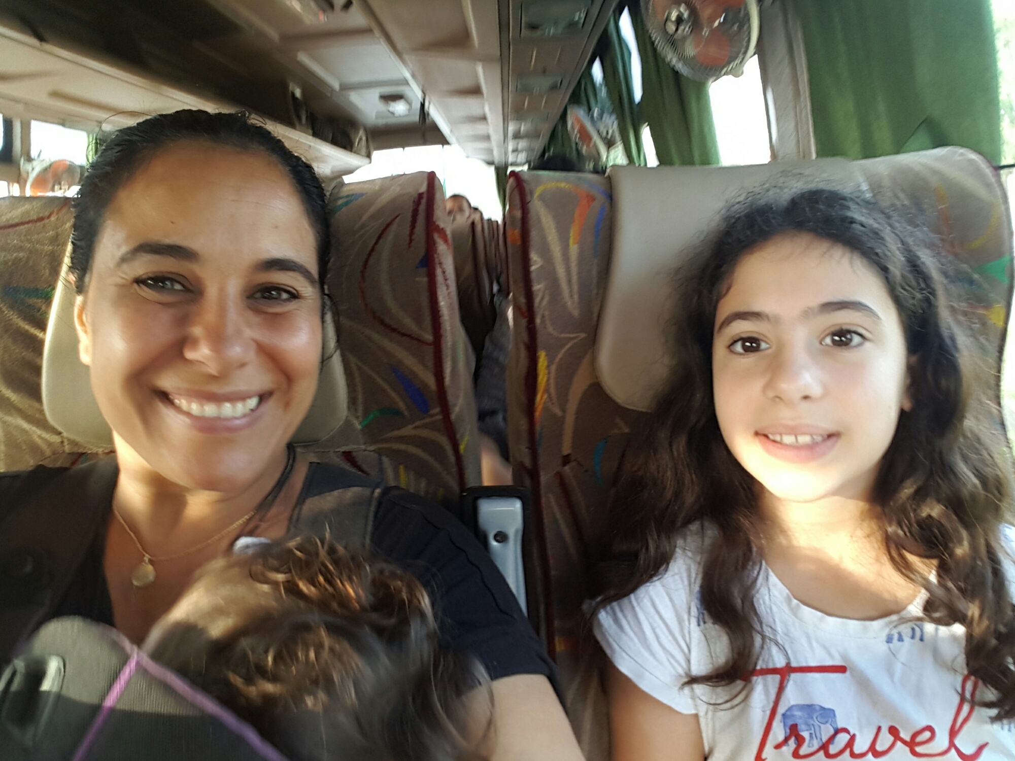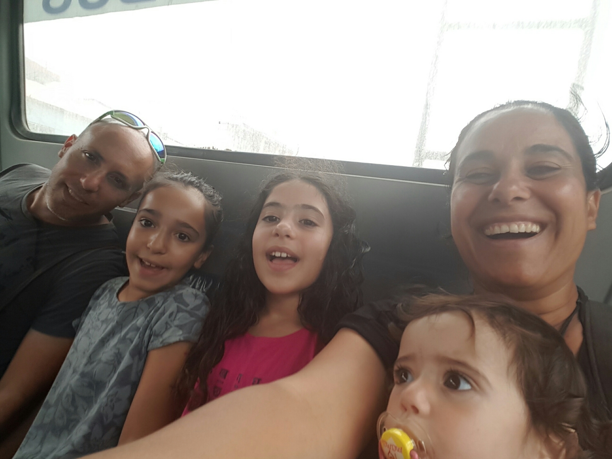 כשהחלפנו לאוטובוס השני, הוא היה עמוס ברובו, רוני ואלה ישבו בספסל האחורי, גלי ואני בספסל אחד לפניהן ומואב ישב בחלק הקדמי. אבל אז עלו עוד ועוד אנשים וגבר מאוד מבוגר התיישב בהצטופפות ליד אלה ורוני ובין השאר השתעל ודיבר ונשען עליהן כשהתכופף לכיוון החלון. הבנות לקחו את זה יחסית בטוב,