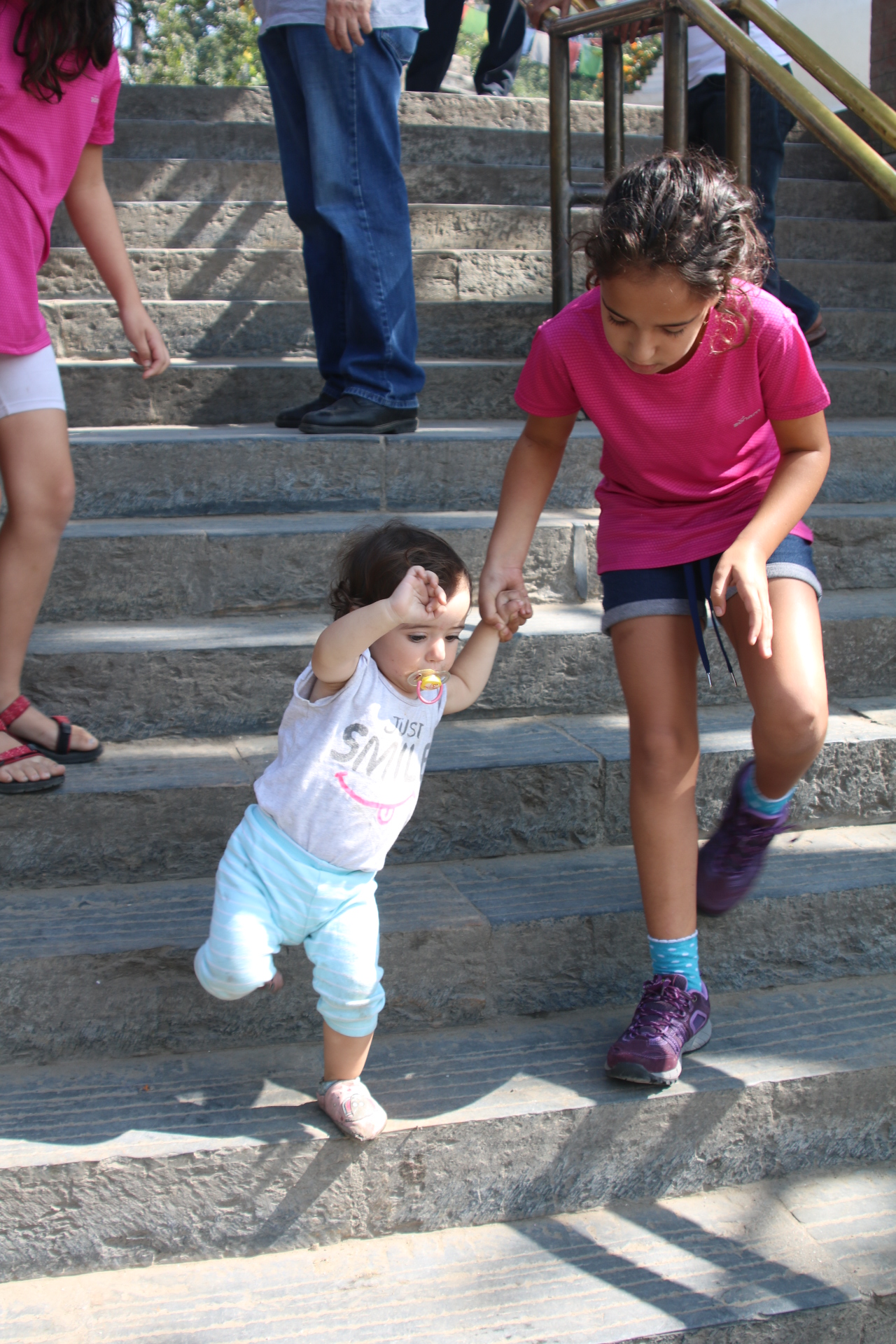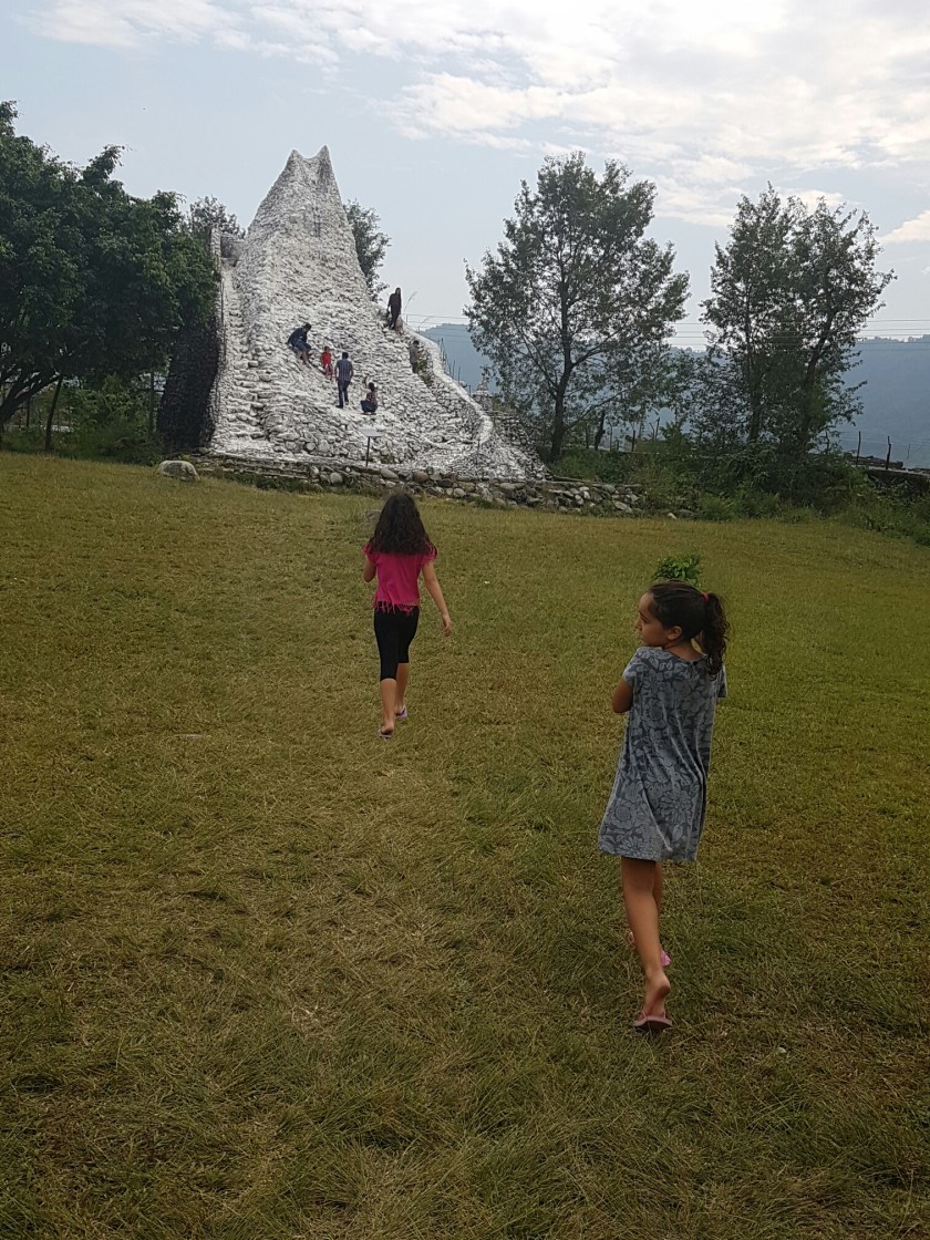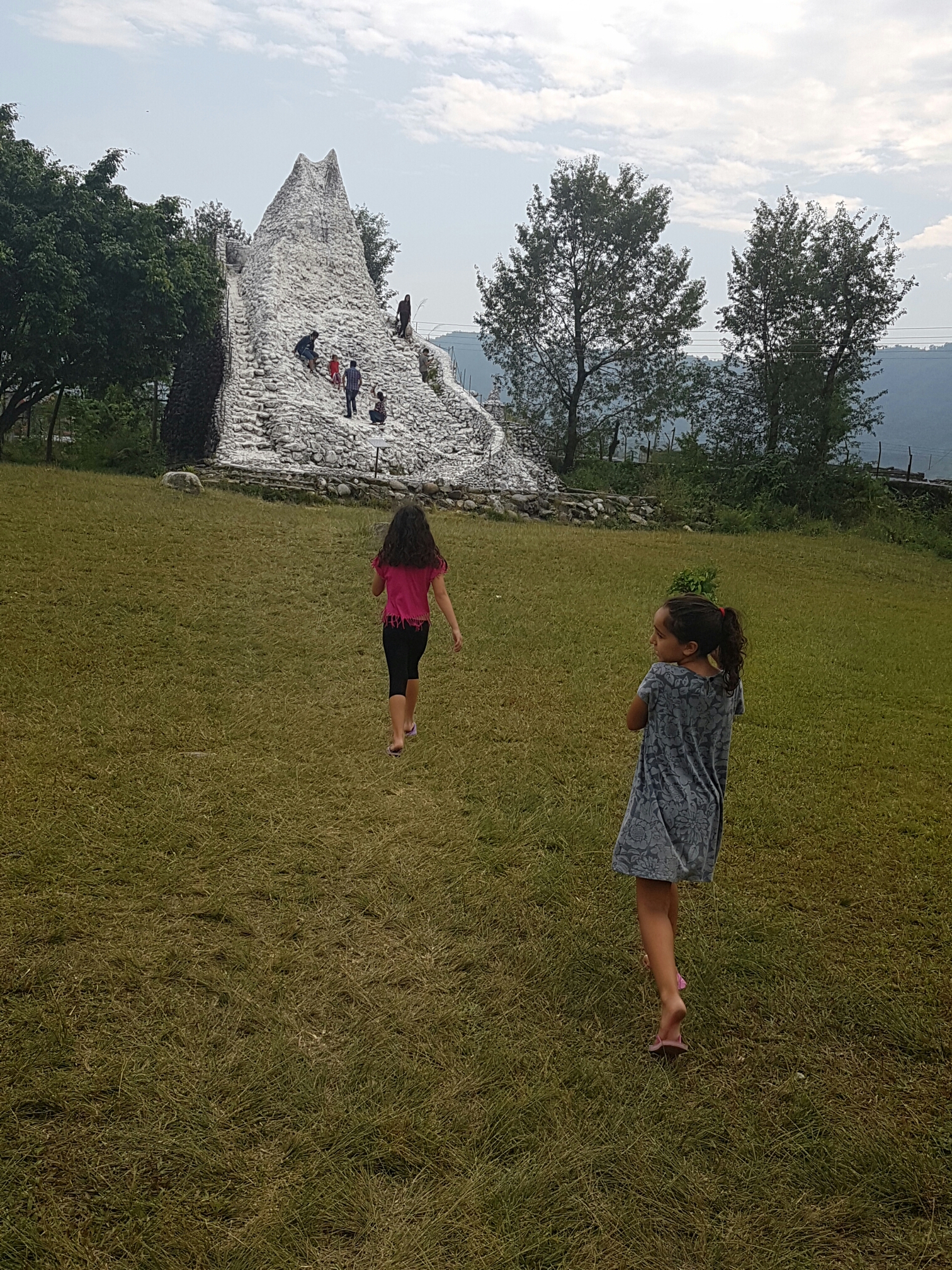 רגע לפני הכניסה קיבל את פנינו דגם של הר המצ'פצורה מעין מתקן טיפוס, והבנות מיהרו לטפס כולל גלוש הקטנטנה. שמאז שהתחילה את צעדיה הראשונים, מנצלת כל הזדמנות להתאמן בהליכה.