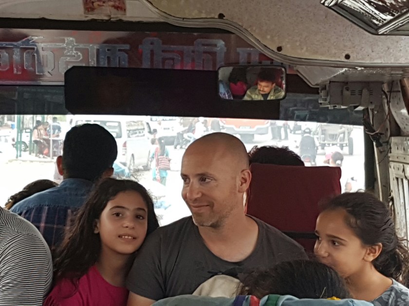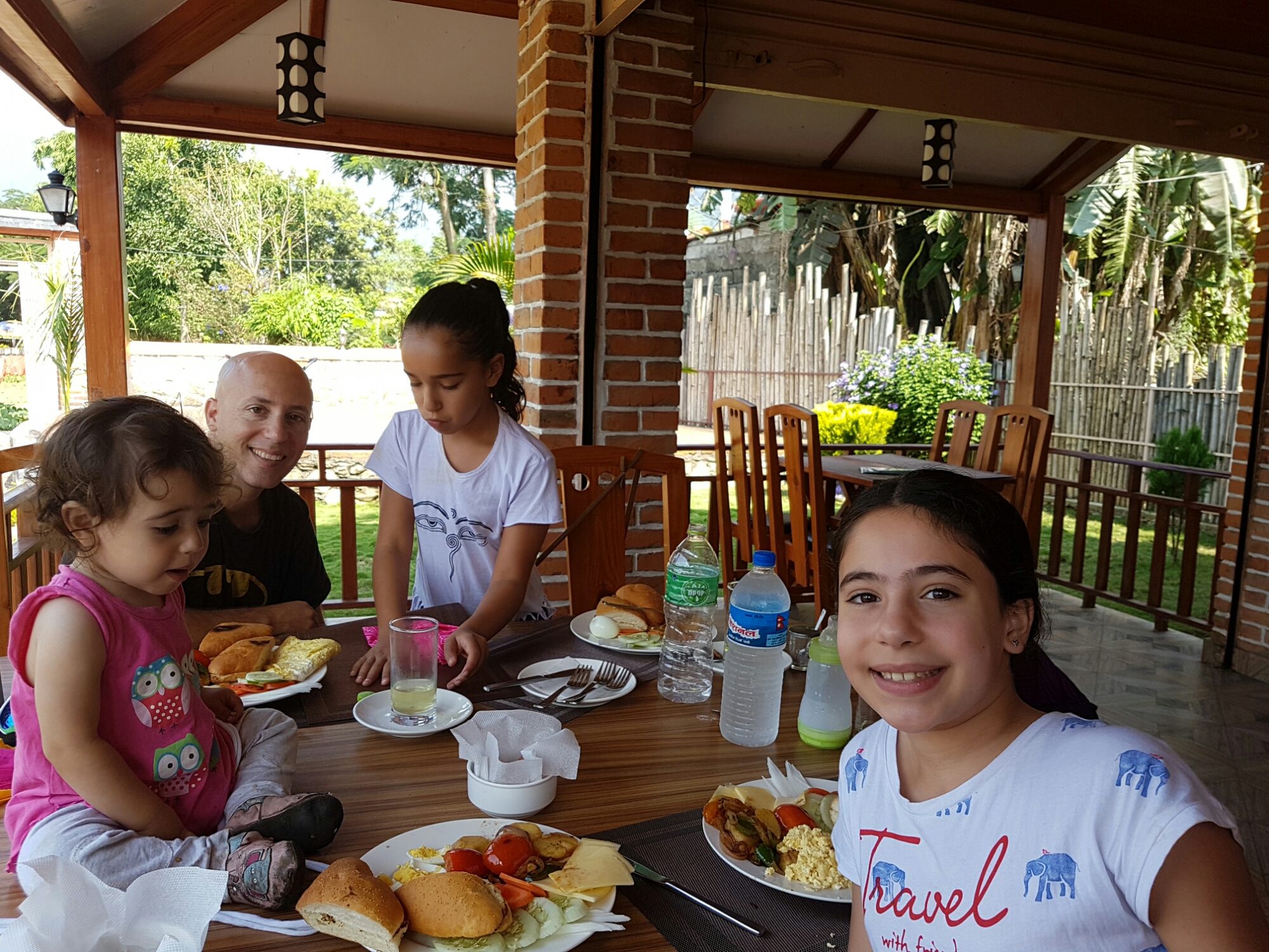 אחרי כשעה וחצי שעתיים, הרגשנו שמיצינו והבנות כבר היו רעבות, ביציאה ממבנה המוזיאון היתה מסעדה ונכנסנו אליה. זללנו מומו ופראטה (פיתה ממולאת בתפוא מתובל), ויצאנו בשמחה לאוטובוס מקומי. הנסיעה היתה מלווה בהומור כדרכנו באוטובוסים המקומיים, הנפאלים מאוד מתלהבים מגלי והיא מסרבת לשתף פעולה וכולם מחייכים.
