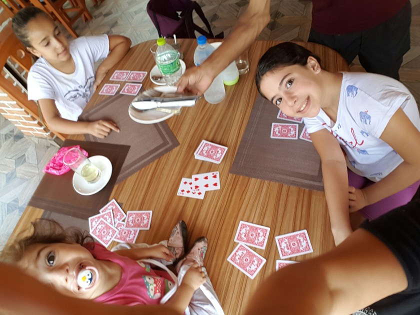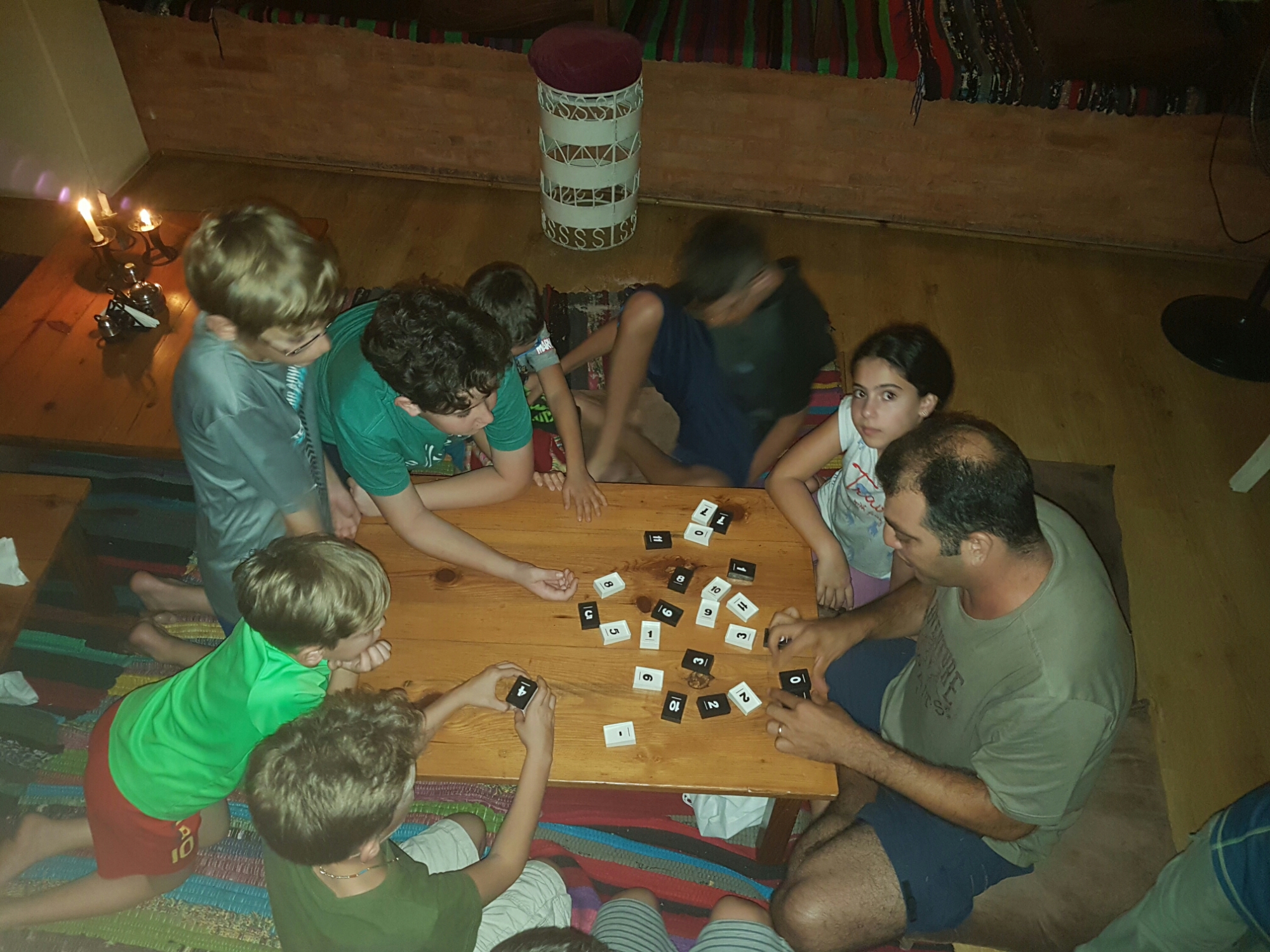 היו המון ילדים בערב הזה, ספרנו חמש (!) משפחות שהיו שם 4 ישראליות ואחת אמריקאית, כל הילדים התגודדו סביב אוהד, מורה בלב ובנפש שגם הוא ומשפחתו (מורן אישתו, נמרוד ושפי הבנים המקסימים) מטיילים חצי שנה, ועושים כל אתגר אפשרי בהצלחה ובשמחה. ולענייננו, הוא הכריז על משחק והזמין את הילדים שהגיעו בשמחה, עד מהרה כולם היו שקועים במשחק