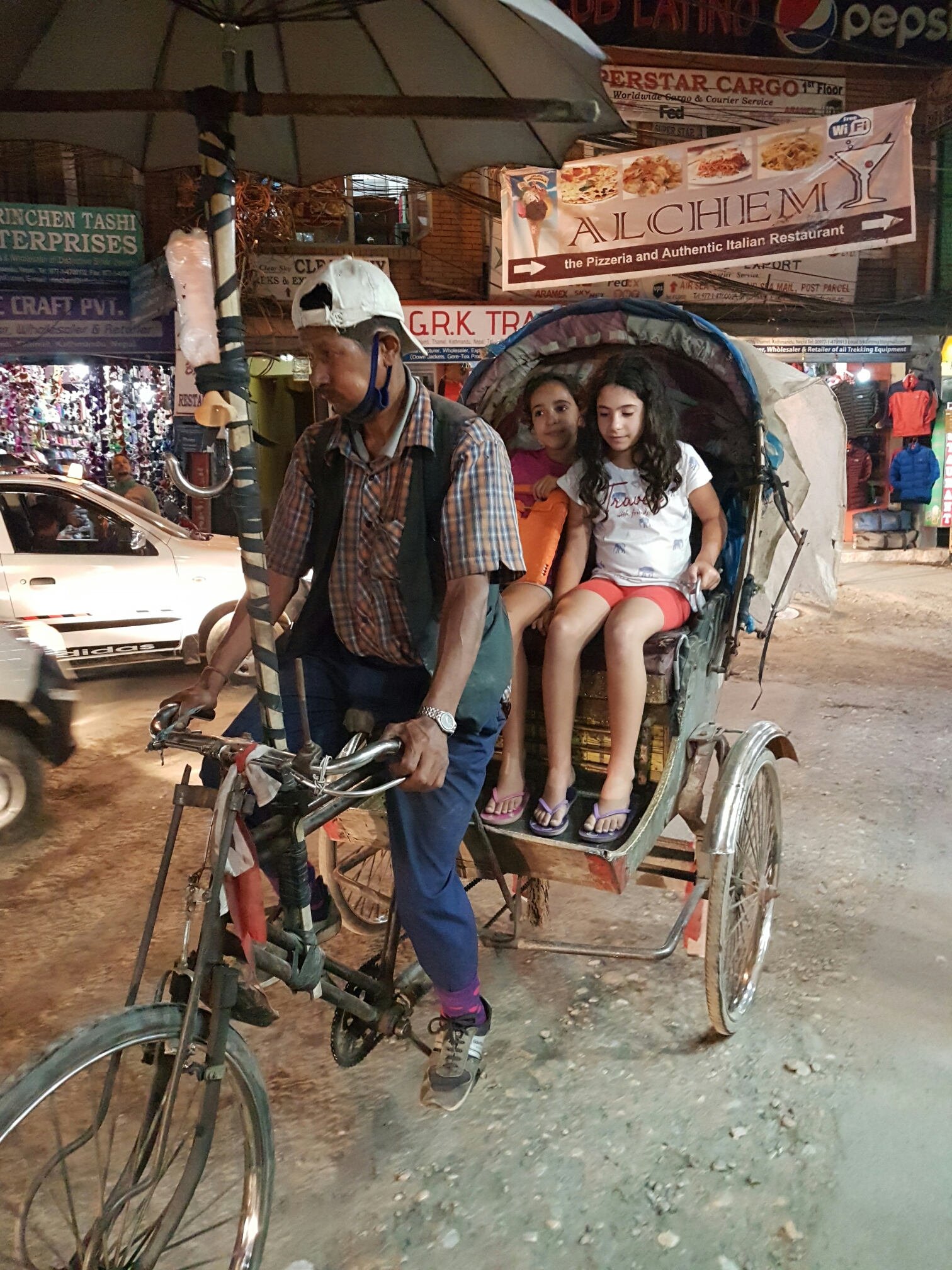 בנסיעה הזו גיליתי לפחות שלושה קניונים ממש קרובים לתאמל, זהו רחוב התיירים,שם היה המלון שלנו. התנועה כאמור היתה מטורפת, אופנועים בהמוניהם נוסעים בכל רווח בין הרכבים שגם הם בהתנהגות דומה ללא התחשבות אם הם בנתיב או לא. הנהג באנגלית בסיסית ביותר הסביר לי שיש מייקרו, טנדר שהוא כמו מונית שירות אצלנו, נוסע בשגעון כמו אצלנו ואחר כך האופנועים ואחר כך המוניות. זה המקום לספר שהנהיגה בנפאל היא ממש חסרת התחשבות, המטרה של כל נהג היא להגיע כמה שיותר מהר, אין התחשבות באנשים מעבר חצייה אין לו כל משמעות, חציית כביש ברגל היא מאתגרת פלוס. אפילו השוטרים שמכוונים את התנועה עושים זאת ללא התחשבות בהולכי הרגל. וגם הנהגים נצמדים לרכבים שלפניהם חותכים, עוקפים הכל הולך.