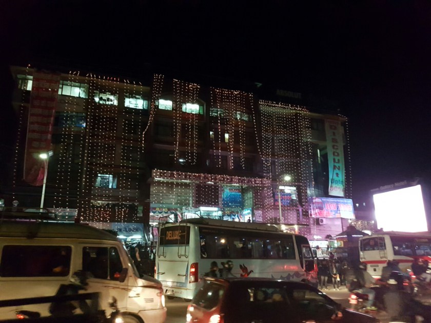 ממש ברגע האחרון נזכרתי שאני צריכה לנסוע לניו רוד, הרחוב בו קניתי את המצלמה שלי, רציתי לבדוק משהו בנוגע לעדשה, השעה היתה כבר אחרי חמש ואני התעקשתי ללכת (טעות!!!) התנועה בכבישים היתה עמוסה בטירוף, הנפאלים רק סיימו לחגוג את חג העפיפונים (הדשאיין) שסיפרתי עליו בפוסט הקודם וכבר היו בהכנות לחג הבא: הדיפא וואלי, הוא חג האורות, כל העיר מתכסה בנורות צבעוניות, הבניינים, הקניונים,