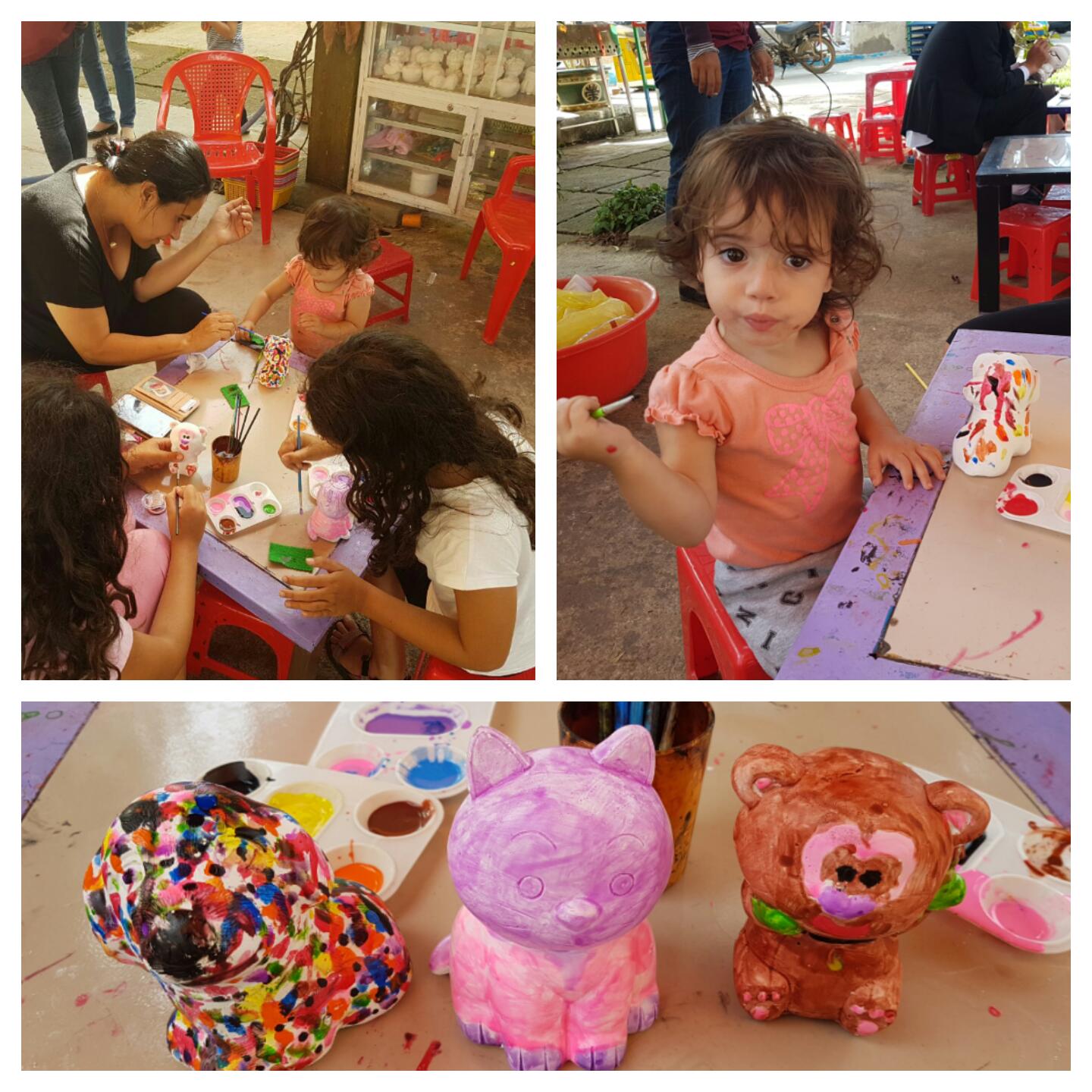 ביום הראשון מצאנו לונה פארק קטן, והבנות השתעשעו בעיקר בשביל גלי הקטנה והרגישו בגאווה של אחיות גדולות, אפילו עשינו יצירה!