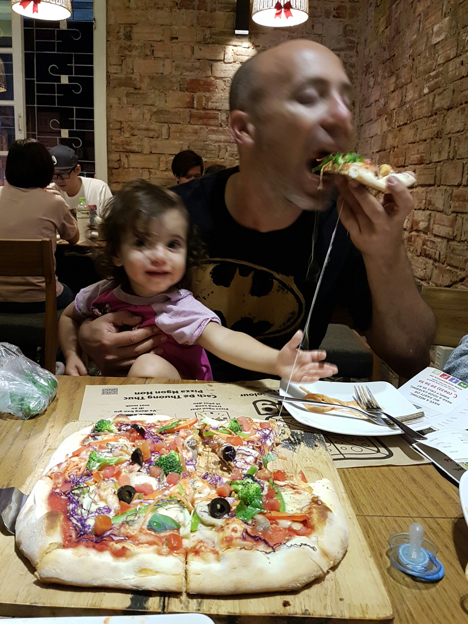 סיימנו את היום במסעדה מול המלון שלנו, שיש בה אוכל איטלקי טעים ובראשו הפיצה גם טעימה וגם יפה